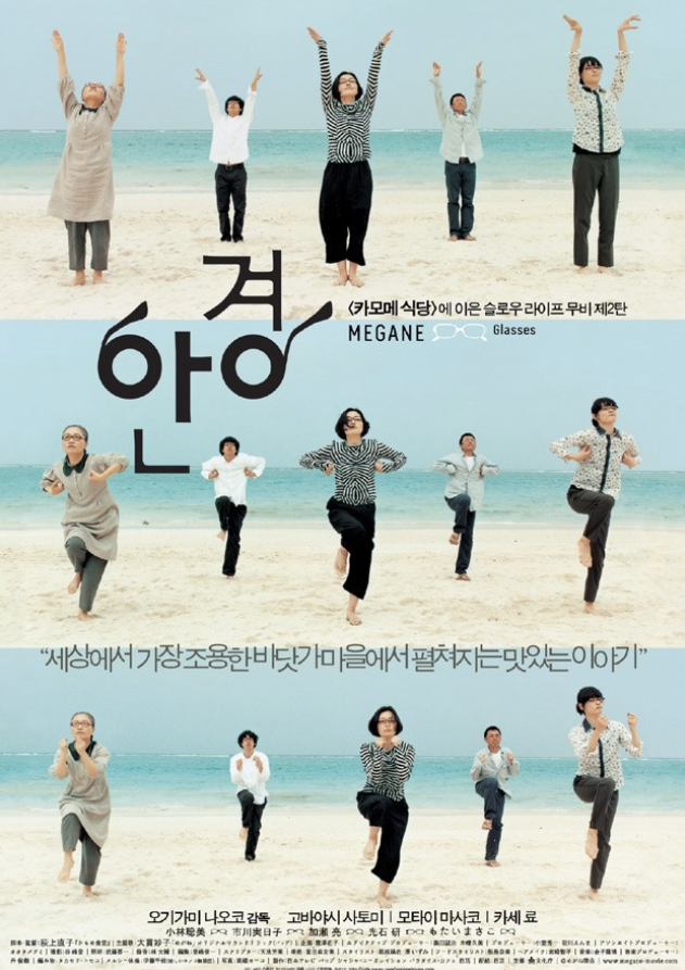한적한 섬에서 벌어지는 소소하지만 깊은 의미를 담은 일상의 순간들을 그립니다. 주인공은 우연히 사색이 특기인 사람들이 모여있는 섬에 도착한 후, 주변 사람들과의 교류를 통해 삶의 진정한 의미와 행복을 발견합니다. 이 영화는 메르시 체조라는 매일 아침 리듬에 맞춰 몸을 움직이는 체조와, 화려하지 않지만 핵심을 담은 빙수와 같은 요소가 등장합니다. 이러한 요소들을 통해 느린 생활의 리듬 속에서 일상의 소중함과 인간관계의 따뜻함을 발견하는 과정을 섬세하게 포착하고 있습니다. 이러한 섬에 도착한 주인공 타에코(고바야시 사토미)를 통해 현대 사회에서 잊힌 자연과의 교감, 그리고 인간 본연의 행복을 찾아가는 여정을 보여주고자 합니다. 영화 속에서 안경은 단순한 시각적 도구가 아닌, 주인공이 세상을 다르게 바라보고 자신을 되돌아보게 하는 상징적인 매개체로 사용됩니다. 또한 영화 속에서 다양한 방식으로 해석됩니다. 영화 속 주요 장면들, 특히 안경을 쓰고 있거나 벗고 있는 장면들은 이러한 상징적 의미를 더욱 부각하며, 영화의 메시지를 더욱 강력하게 전달합니다. 이를 통해 감독은 일상에서 벗어나 자신을 돌아보고, 주변 세계와 조화롭게 살아가는 법을 재발견하는 것이 얼마나 중요한지와 같은 메시지를 전달하고 있습니다. 바쁜 현대 생활 속에서 잊힌 일상의 아름다움과 간단한 행복을 찾아가는 과정을 잘 나타내고 있습니다. 오기가모 나오코 감독은 영화 안경을 통해 관객들에게 느린 생활을 통해 진정한 자신을 발견하고, 삶의 소중한 가치를 재인식하도록 영감을 주고 있습니다.